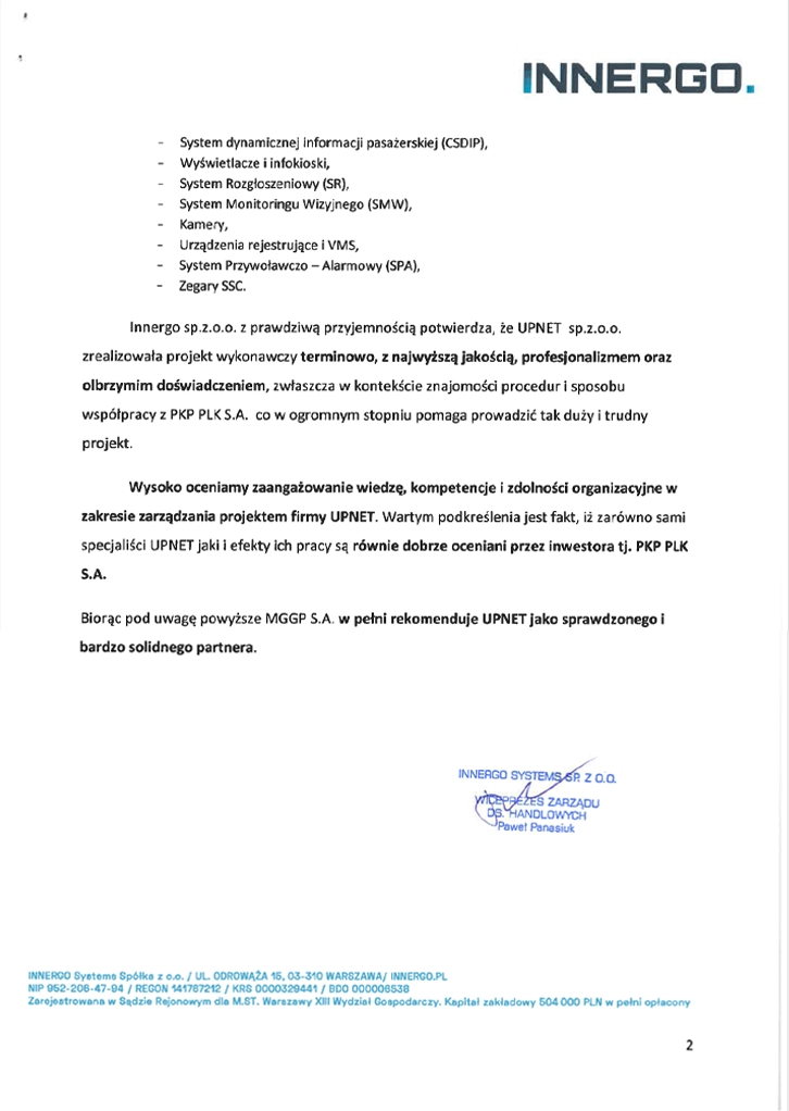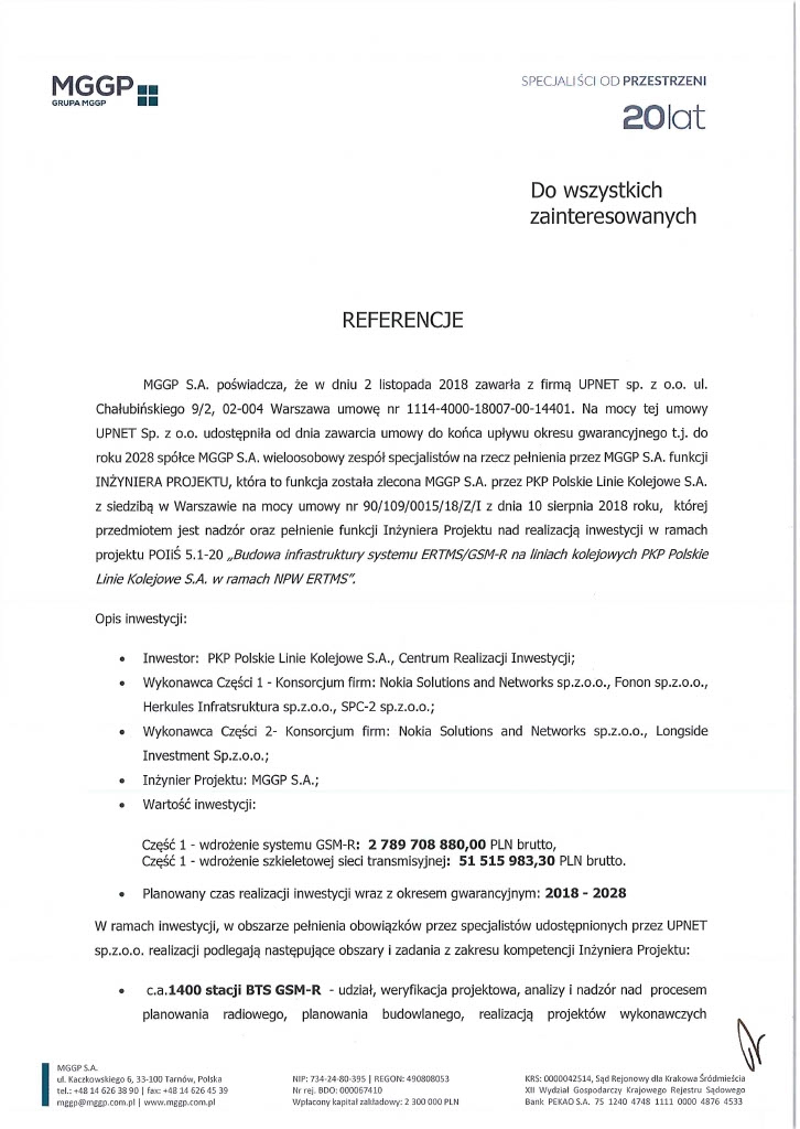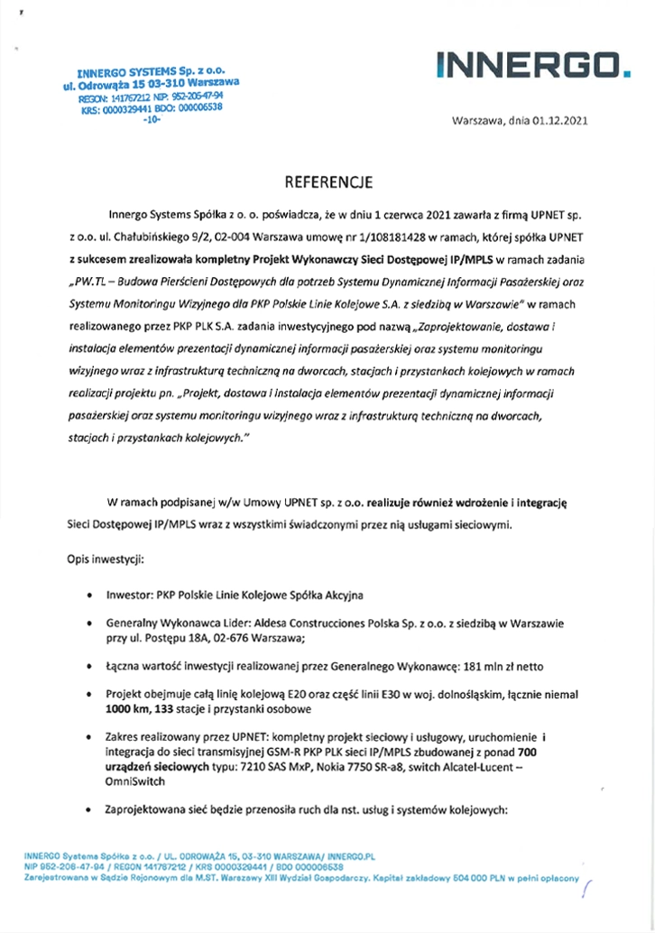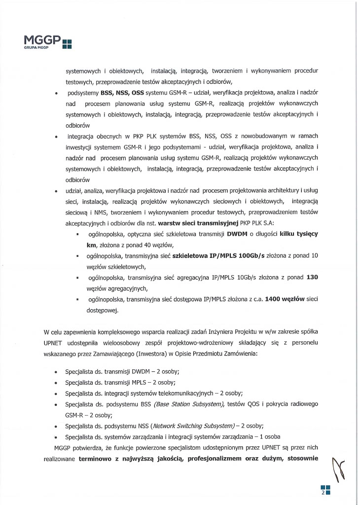 UPNET to pasja do bezpiecznych i niezawodnych sieci i systemów TELCO/IT. Koncentrujemy się na realizacji dużych i bardzo dużych projektów TELCO/IT dla dużych podmiotów, często publicznych (m.in. PKP PLK, Grupa PGE, PSE). Projektujemy i wdrażamy właściwie wszystkie typy systemów i sieci telekomunikacyjnych: Private 5G, 5G, 4G, 3G, 2G, GSM-R, NSS, OSS sieci OTN, DWDM, IP/MPLS, Carrier Ethernet.